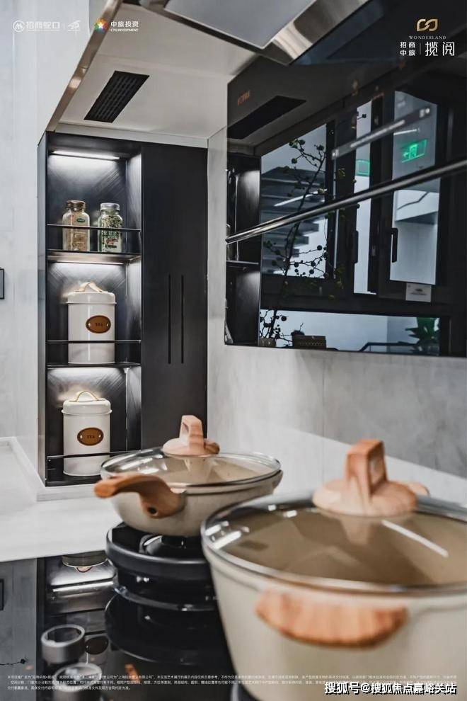 招商中旅揽阅售楼处电话:厨房更有一线品牌方太(或老板等同等品牌)系列抽烟机✿◈◈、燃气灶和洗碗机厨房三件套,更加匹配时代青年的生活需求,让烹饪时光更加便捷从容.